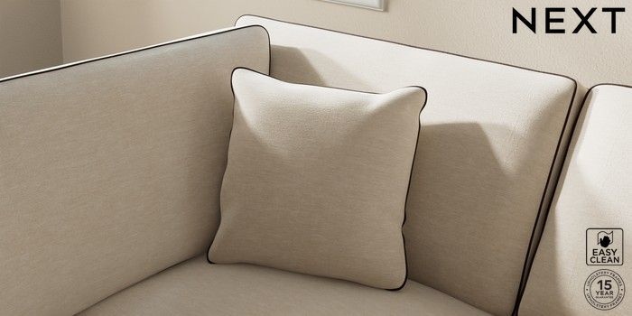 7.3.1 Buy Ashford Medium Corner Chaise - Left Hand Fine Chenille with Contrast Oyster and Chocolate Brown Modern Turned Metal Cap - Mid from the Next UK online shop Click here to use our accessible website
