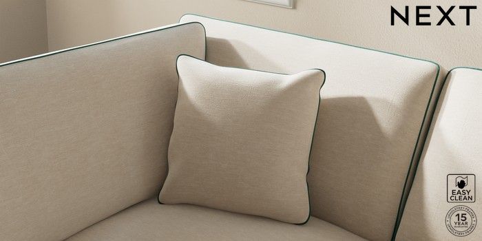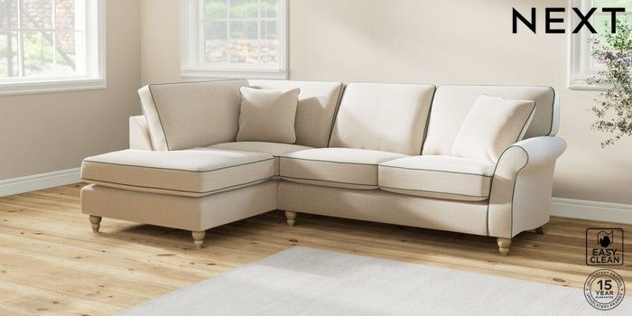 7.3.1 Buy Ashford Medium Corner Chaise - Left Hand Fine Chenille with Contrast Oyster and Dark Juniper Green Low Turned - Light from the Next UK online shop Click here to use our accessible website