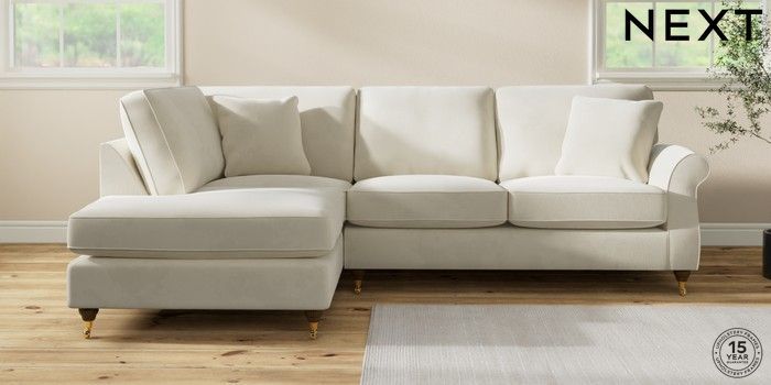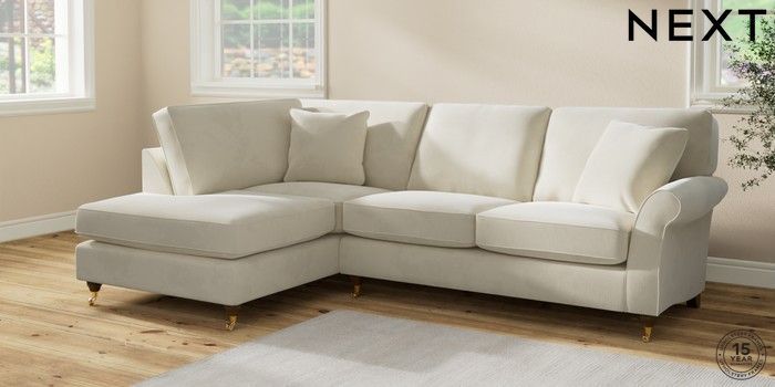 7.0.3 Buy Ashford Medium Corner Chaise - Left Hand Luxe Chenille Oyster Castor - Mid from the Next UK online shop Click here to use our accessible website