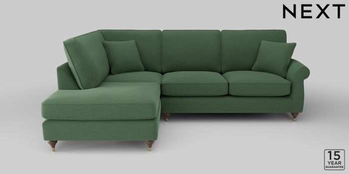 6.10.9 Buy Ashford Medium Corner Chaise - Left Hand Relaxed Linen Look Dark Green Modern Turned Metal Cap - Mid from the Next UK online shop Click here to use our accessible website
