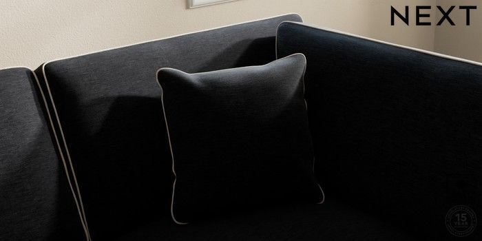 7.3.1 Buy Ashford Medium Corner Chaise - Right Hand Fine Chenille with Contrast Black and Oyster Castor - Dark from the Next UK online shop Click here to use our accessible website