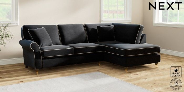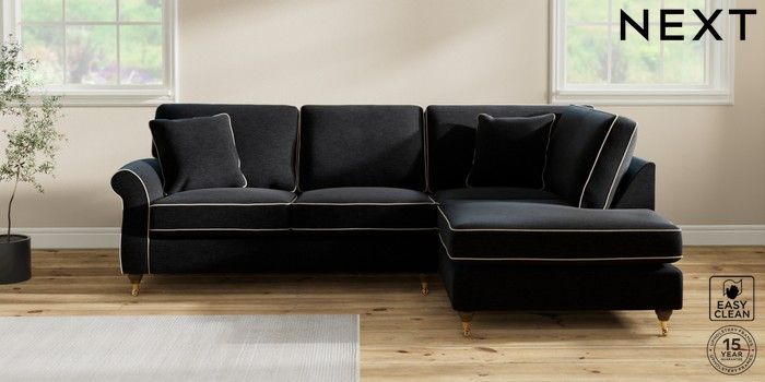 7.3.1 Buy Ashford Medium Corner Chaise - Right Hand Fine Chenille with Contrast Black and Oyster Castor - Mid from the Next UK online shop Click here to use our accessible website