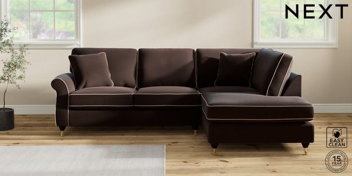 7.3.1 Buy Ashford Medium Corner Chaise - Right Hand Fine Chenille with Contrast Chocolate Brown and Oyster Castor - Dark from the Next UK online shop Click here to use our accessible website
