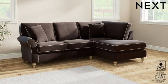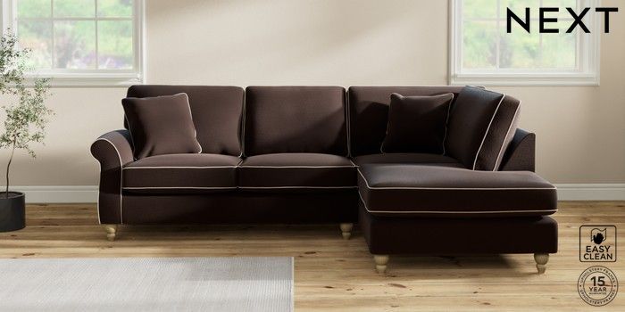 7.3.1 Buy Ashford Medium Corner Chaise - Right Hand Fine Chenille with Contrast Chocolate Brown and Oyster Low Turned - Light from the Next UK online shop Click here to use our accessible website