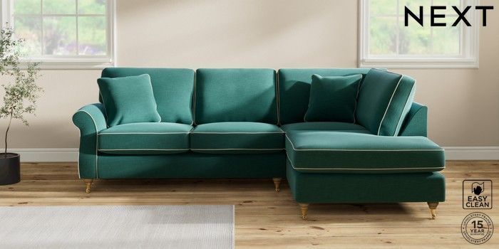 7.3.1 Buy Ashford Medium Corner Chaise - Right Hand Fine Chenille with Contrast Dark Juniper Green and Oyster Castor - Light from the Next UK online shop Click here to use our accessible website
