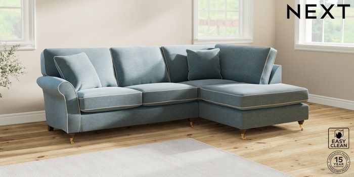 7.3.1 Buy Ashford Medium Corner Chaise - Right Hand Fine Chenille with Contrast Mid Blue and Oyster Castor - Mid from the Next UK online shop Click here to use our accessible website