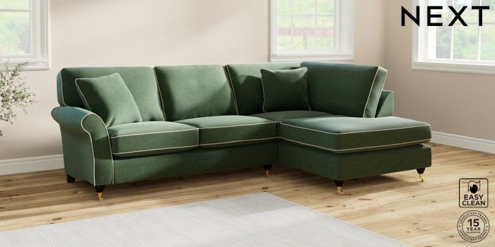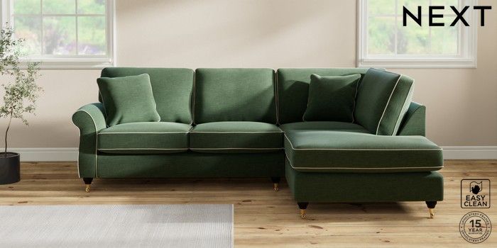 7.3.1 Buy Ashford Medium Corner Chaise - Right Hand Fine Chenille with Contrast Mid Khaki Green and Oyster Castor - Dark from the Next UK online shop Click here to use our accessible website