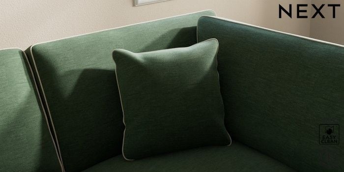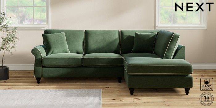 7.3.1 Buy Ashford Medium Corner Chaise - Right Hand Fine Chenille with Contrast Mid Khaki Green and Oyster Low Turned - Dark from the Next UK online shop Click here to use our accessible website