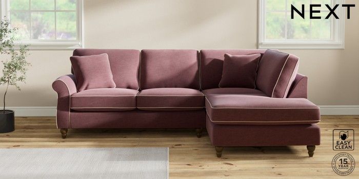 7.3.1 Buy Ashford Medium Corner Chaise - Right Hand Fine Chenille with Contrast Mid Mulberry Purple and Oyster Low Turned - Mid from the Next UK online shop Click here to use our accessible website