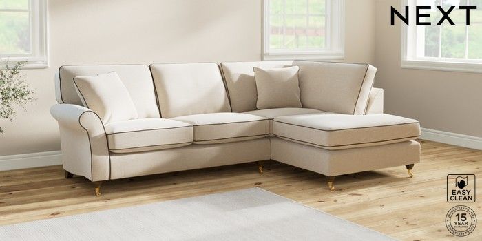7.3.1 Buy Ashford Medium Corner Chaise - Right Hand Fine Chenille with Contrast Oyster and Chocolate Brown Castor - Mid from the Next UK online shop Click here to use our accessible website
