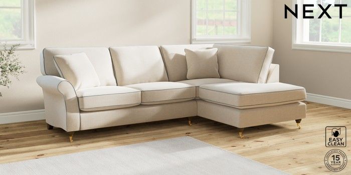 7.3.1 Buy Ashford Medium Corner Chaise - Right Hand Fine Chenille with Contrast Oyster and Mid Blue Castor - Mid from the Next UK online shop Click here to use our accessible website