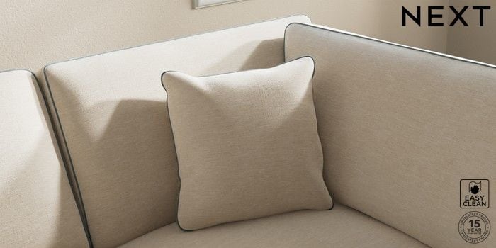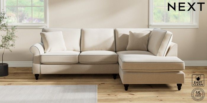 7.3.1 Buy Ashford Medium Corner Chaise - Right Hand Fine Chenille with Contrast Oyster and Mid Blue Low Turned - Dark from the Next UK online shop Click here to use our accessible website