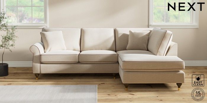 7.3.1 Buy Ashford Medium Corner Chaise - Right Hand Fine Chenille with Contrast Oyster and Mid Mulberry Purple Modern Turned Metal Cap - Mid from the Next UK online shop Click here to use our accessible website