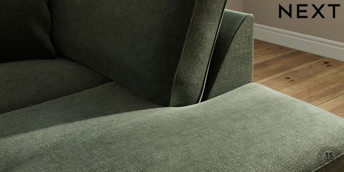 6.12.1 Buy Ashford Medium Corner Chaise - Right Hand Luxe Chenille Mid Green Castor - Dark from the Next UK online shop Click here to use our accessible website