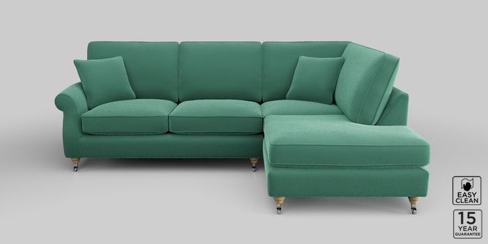 6.11.4 Buy Ashford Medium Corner Chaise - Right Hand Plush Velvet Easy Clean Bottle Green Chrome Castor - Dark from the Next UK online shop Click here to use our accessible website