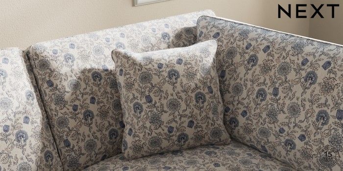 7.3.1 Buy Ashford Medium Corner Chaise - Right Hand Relaxed Linen Look Print Woodblock Floral Blue Low Turned - Light from the Next UK online shop Click here to use our accessible website