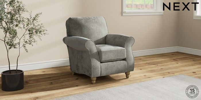 6.12.1 Buy Ashford Small Armchair Chunky Chenille Light Grey Low Turned - Light from the Next UK online shop Click here to use our accessible website