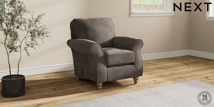 6.12.1 Buy Ashford Small Armchair Chunky Chenille Mink Brown Low Turned - Light from the Next UK online shop Click here to use our accessible website