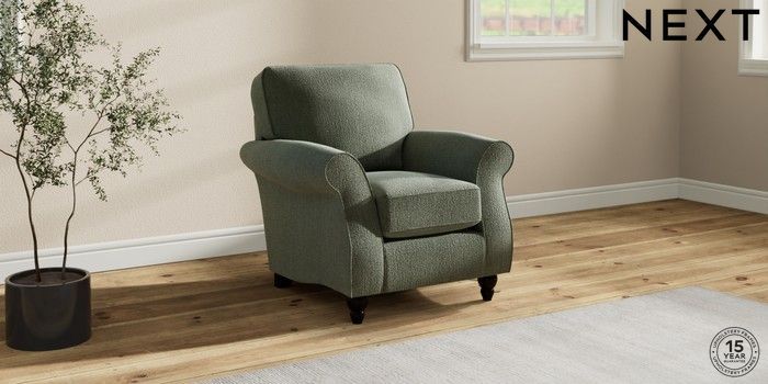 6.12.1 Buy Ashford Small Armchair Chunky Texture Mid Forest Green Low Turned - Dark from the Next UK online shop Click here to use our accessible website