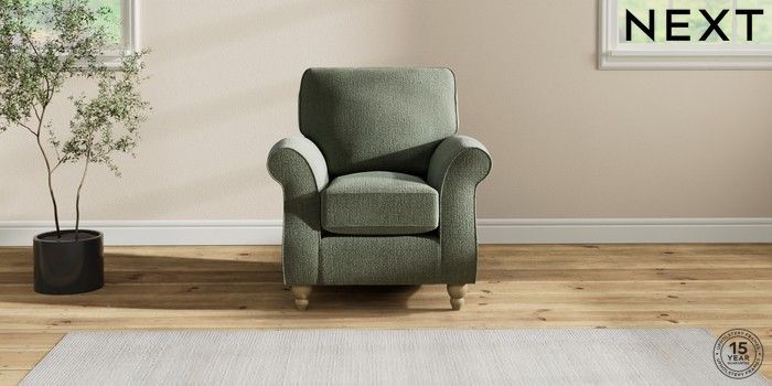 6.12.1 Buy Ashford Small Armchair Chunky Texture Mid Forest Green Low Turned - Light from the Next UK online shop Click here to use our accessible website