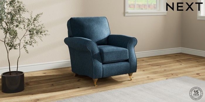 6.12.1 Buy Ashford Small Armchair Cotswold Chenille Dark Blue Castor - Light from the Next UK online shop Click here to use our accessible website