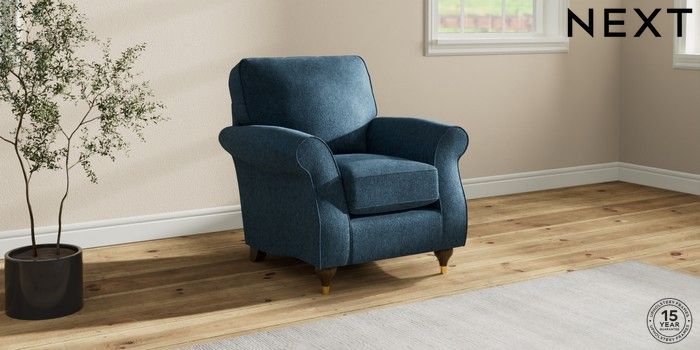 6.12.1 Buy Ashford Small Armchair Cotswold Chenille Dark Blue Modern Turned Metal Cap - Mid from the Next UK online shop Click here to use our accessible website