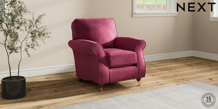 6.12.1 Buy Ashford Small Armchair Cotswold Chenille Dark Raspberry Pink Castor - Mid from the Next UK online shop Click here to use our accessible website