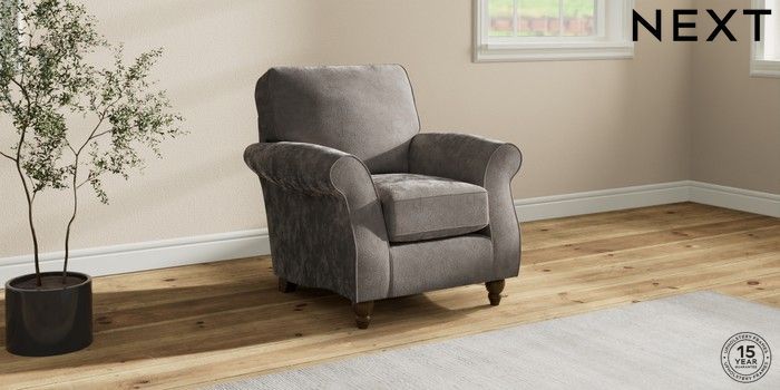 6.12.1 Buy Ashford Small Armchair Distressed Velour French Grey Low Turned - Mid from the Next UK online shop Click here to use our accessible website