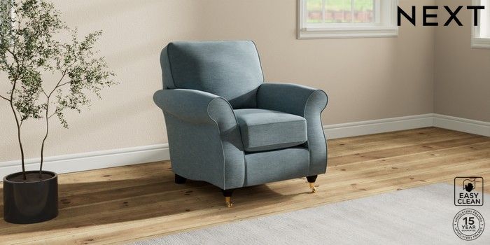 6.12.1 Buy Ashford Small Armchair Fine Chenille Easy Clean Mid Blue Castor - Dark from the Next UK online shop Click here to use our accessible website