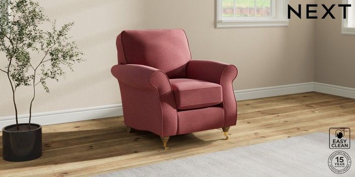 6.12.1 Buy Ashford Small Armchair Fine Chenille Easy Clean Mid Pink Castor - Light from the Next UK online shop Click here to use our accessible website