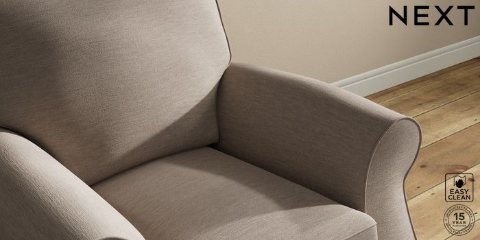 6.12.1 Buy Ashford Small Armchair Fine Chenille Easy Clean Mid Taupe Brown Modern Turned Metal Cap - Mid from the Next UK online shop Click here to use our accessible website