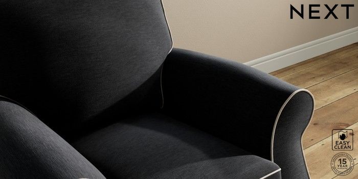 7.3.1 Buy Ashford Small Armchair Fine Chenille with Contrast Black and Oyster Castor - Light from the Next UK online shop Click here to use our accessible website