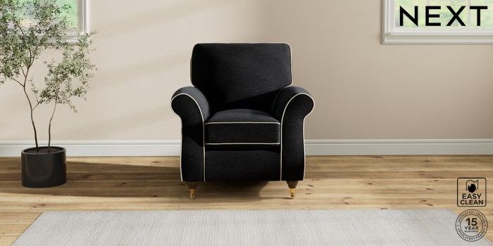 7.3.1 Buy Ashford Small Armchair Fine Chenille with Contrast Black and Oyster Castor - Mid from the Next UK online shop Click here to use our accessible website