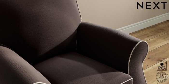 7.3.1 Buy Ashford Small Armchair Fine Chenille with Contrast Chocolate Brown and Oyster Modern Turned Metal Cap - Mid from the Next UK online shop Click here to use our accessible website