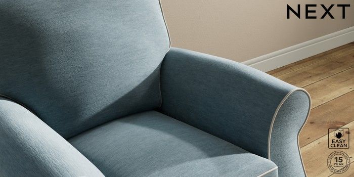7.3.1 Buy Ashford Small Armchair Fine Chenille with Contrast Mid Blue and Oyster Castor - Dark from the Next UK online shop Click here to use our accessible website
