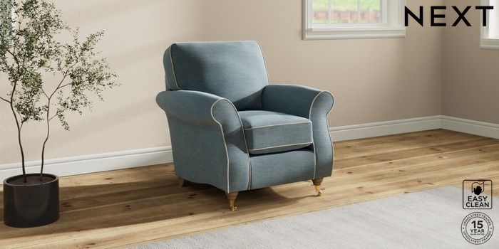 7.3.1 Buy Ashford Small Armchair Fine Chenille with Contrast Mid Blue and Oyster Castor - Light from the Next UK online shop Click here to use our accessible website