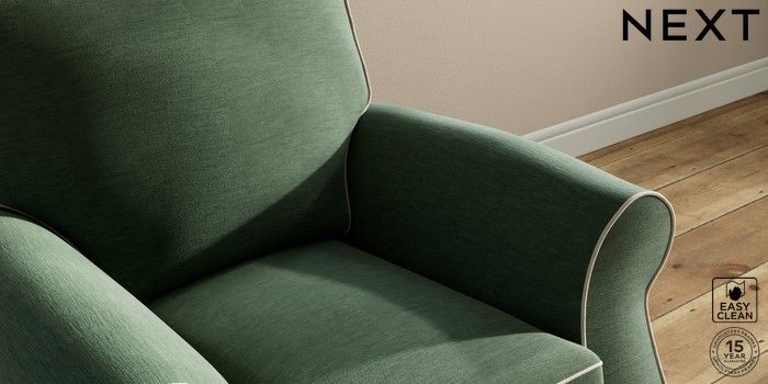 7.3.1 Buy Ashford Small Armchair Fine Chenille with Contrast Mid Khaki Green and Oyster Castor - Mid from the Next UK online shop Click here to use our accessible website