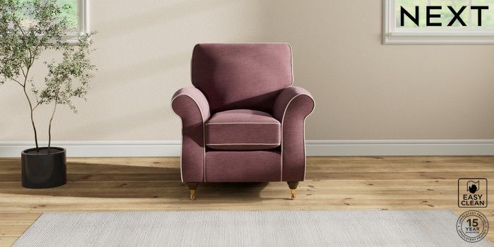 7.3.1 Buy Ashford Small Armchair Fine Chenille with Contrast Mid Mulberry Purple and Oyster Castor - Mid from the Next UK online shop Click here to use our accessible website