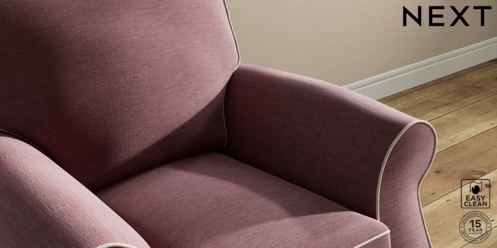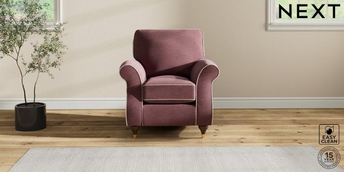 7.3.1 Buy Ashford Small Armchair Fine Chenille with Contrast Mid Mulberry Purple and Oyster Modern Turned Metal Cap - Mid from the Next UK online shop
