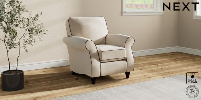 7.3.1 Buy Ashford Small Armchair Fine Chenille with Contrast Oyster and Chocolate Brown Low Turned - Dark from the Next UK online shop Click here to use our accessible website