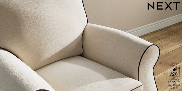 7.3.1 Buy Ashford Small Armchair Fine Chenille with Contrast Oyster and Chocolate Brown Modern Turned Metal Cap - Mid from the Next UK online shop Click here to use our accessible website