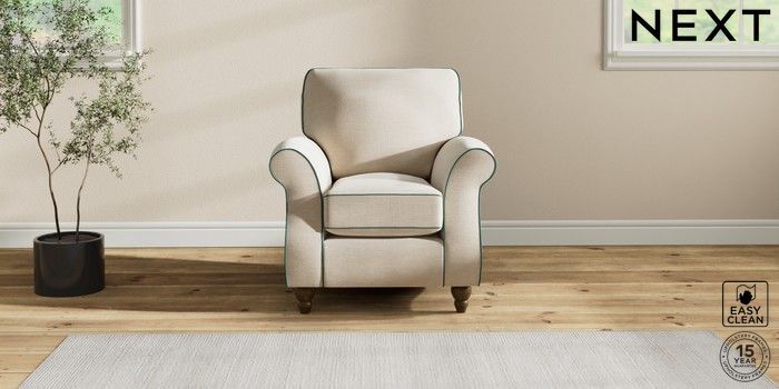7.3.1 Buy Ashford Small Armchair Fine Chenille with Contrast Oyster and Dark Juniper Green Low Turned - Mid from the Next UK online shop Click here to use our accessible website