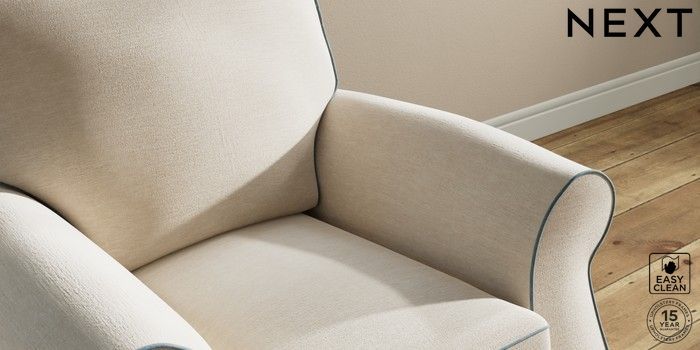7.3.1 Buy Ashford Small Armchair Fine Chenille with Contrast Oyster and Mid Blue Modern Turned Metal Cap - Mid from the Next UK online shop Click here to use our accessible website