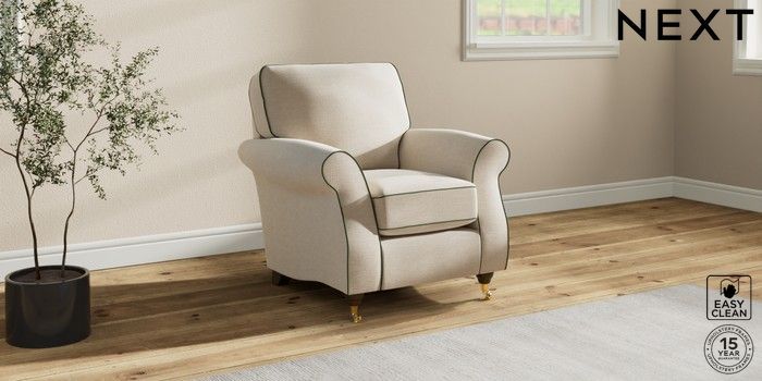 7.3.1 Buy Ashford Small Armchair Fine Chenille with Contrast Oyster and Mid Khaki Green Castor - Mid from the Next UK online shop Click here to use our accessible website