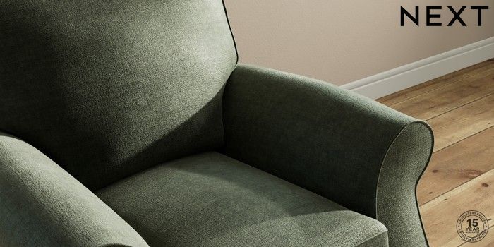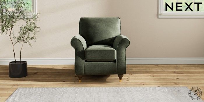6.12.1 Buy Ashford Small Armchair Luxe Chenille Mid Green Modern Turned Metal Cap - Mid from the Next UK online shop Click here to use our accessible website