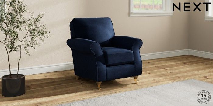 6.12.1 Buy Ashford Small Armchair Luxe Chenille Navy Blue Castor - Light from the Next UK online shop Click here to use our accessible website