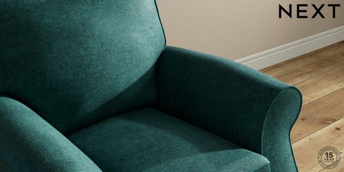 6.12.1 Buy Ashford Small Armchair Plush Chenille Dark Teal Green Castor - Mid from the Next UK online shop Click here to use our accessible website