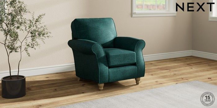 6.12.1 Buy Ashford Small Armchair Plush Chenille Dark Teal Green Low Turned - Light from the Next UK online shop Click here to use our accessible website