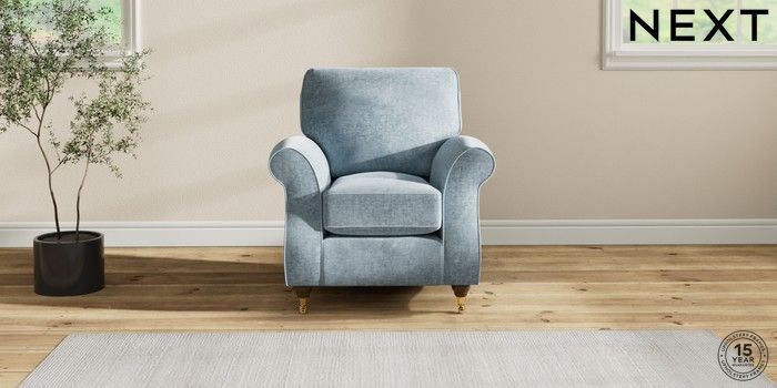 7.2.6 Buy Ashford Small Armchair Plush Chenille Light Blue Castor - Mid from the Next UK online shop Click here to use our accessible website