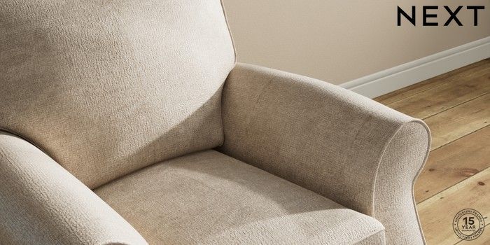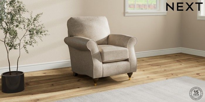 6.12.1 Buy Ashford Small Armchair Plush Chenille Light Natural Modern Turned Metal Cap - Mid from the Next UK online shop Click here to use our accessible website